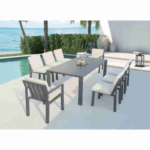 モダンな屋外ダイニングテーブルラタンチェアセットアルミウッド耐候性家具ホテルと庭园